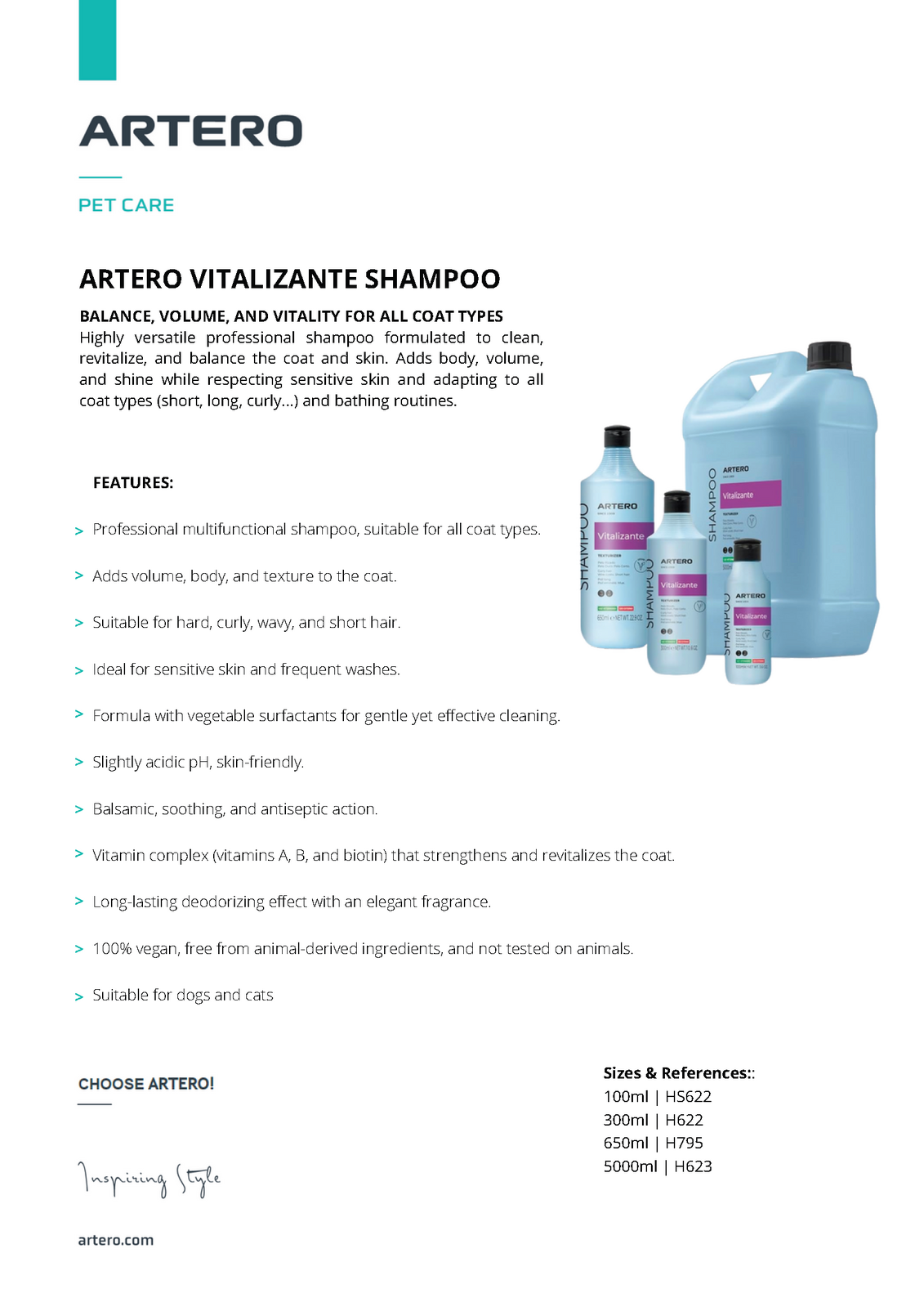 Artero Vitalizing shampoo for dogs that need;