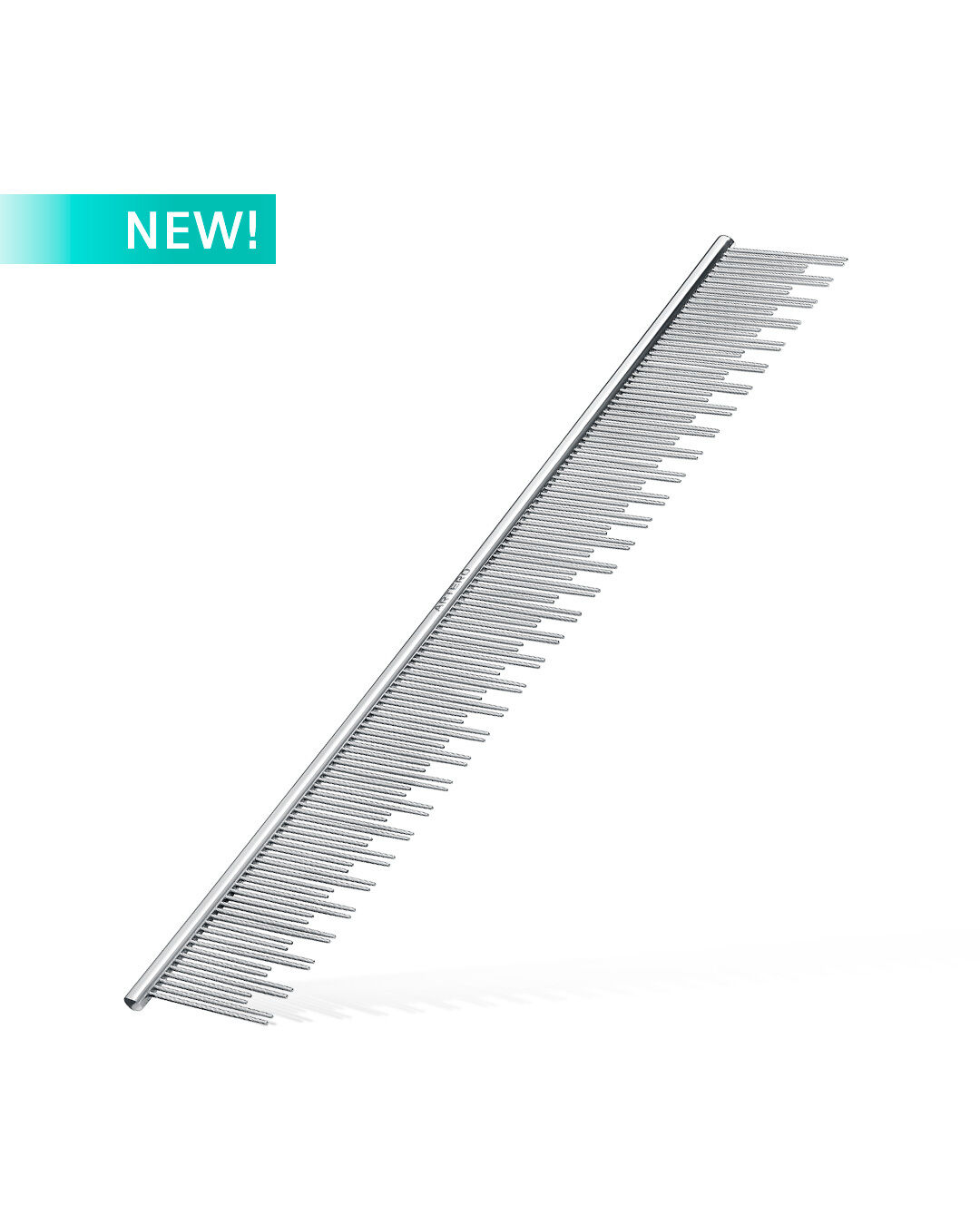 Metal comb with green galvanised coating which prevents rust and helps the teeth to glide through the hair. Double-length teeth with tapered tips, ideal for backcombing and lifting hair, as well as effectively separating and smoothing hair to add volume to fine-coated dogs. It adds volume and separates the hair to position it during cutting.